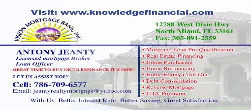 | YOU NEED TO BUY OR LEASE A PROPERTY IN SOUTH FL. PLEASE CONTACT US... COMMERCIAL, RESIDENTIAL, OR MOBIL HOME FINANCIAL HELP IS AVAILABLE! FREE CREDIT REPAIR HELP FOR PROSPECT! |